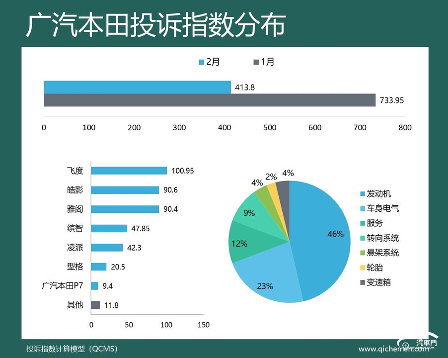 汽車質量投訴點評:廣汽本田2月份的投訴指數只有413.8,環比大幅下降了43.62%,只有一款車型的投訴指數過百。從投訴反饋來看,廣汽本田的投訴依然以老問題為主,飛度發動機異響、皓影遮陽簾卡口斷裂、凌派發動機正時皮帶掉毛是三個集中吐槽對象。