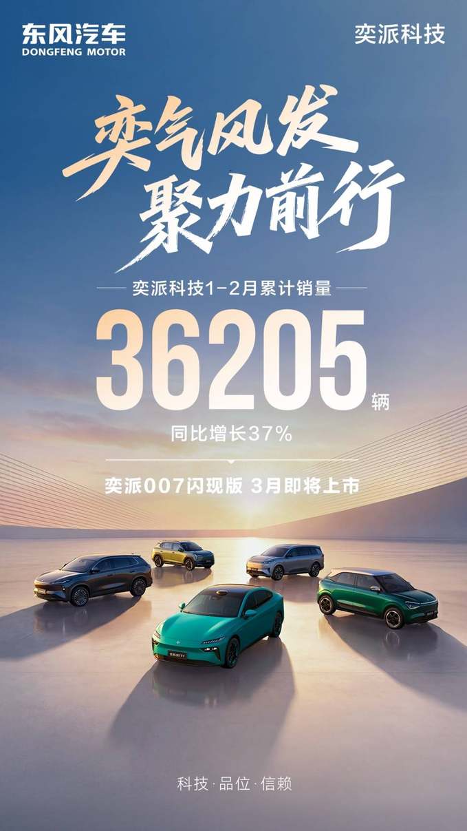 奕派科技逆勢(shì)增長(zhǎng)!3月1日公布的最新數(shù)據(jù)顯示,奕派科技2月銷量達(dá)14464臺(tái),保持同比增長(zhǎng);1-2 月累計(jì)銷量36205臺(tái),同比增長(zhǎng)37%,成功打贏新春第一仗。在行業(yè)整體下滑的形勢(shì)下,奕派科技延續(xù)開門紅勢(shì)頭,彰顯強(qiáng)勁發(fā)展動(dòng)能。乘勢(shì)而上,奕派科技開啟新一輪營(yíng)銷攻勢(shì),奕派007閃現(xiàn)版將在3月上市,其余多款新品也將陸續(xù)登場(chǎng)。