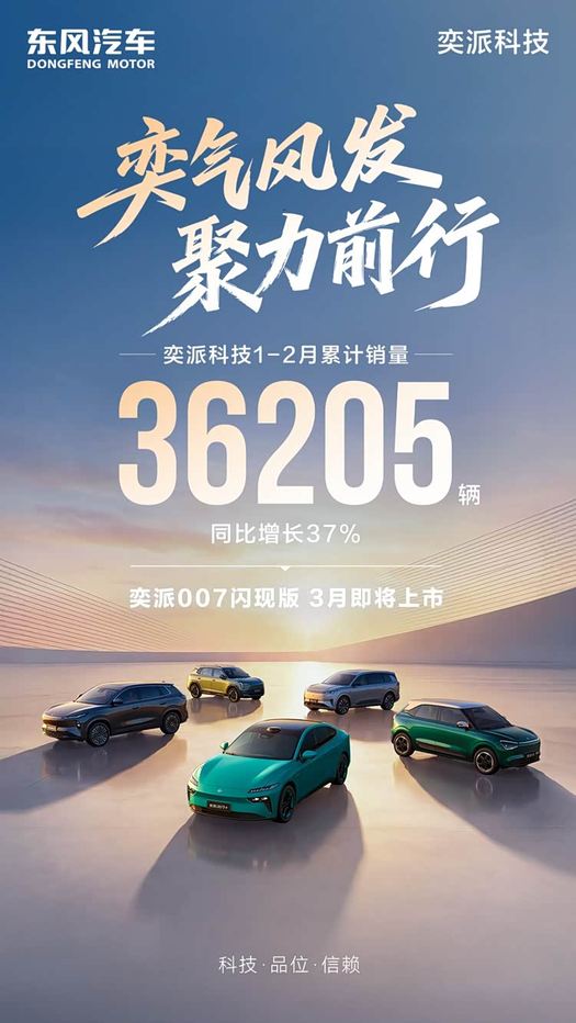 奕派科技逆勢增長!3月1日公布的最新數據顯示,奕派科技2月銷量達14464臺,保持同比增長;1-2 月累計銷量36205臺,同比增長37%,成功打贏新春第一仗。在行業整體下滑的形勢下,奕派科技延續開門紅勢頭,彰顯強勁發展動能。乘勢而上,奕派科技開啟新一輪營銷攻勢,奕派007閃現版將在3月上市,其余多款新品也將陸續登場。