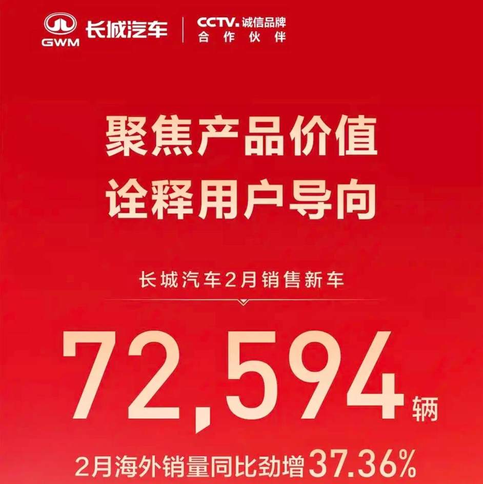 長城汽車2月銷售新車72594輛,整體銷量表現可以用“穩健”來形容,官方數據顯示,魏牌銷量為5615輛,同比增長54.13%,高端化轉型已見成效。海外銷量同比勁增37.36%,長城汽車在海外市場的動作也很快,這一品牌一直堅持“內外開攻”的路線。
