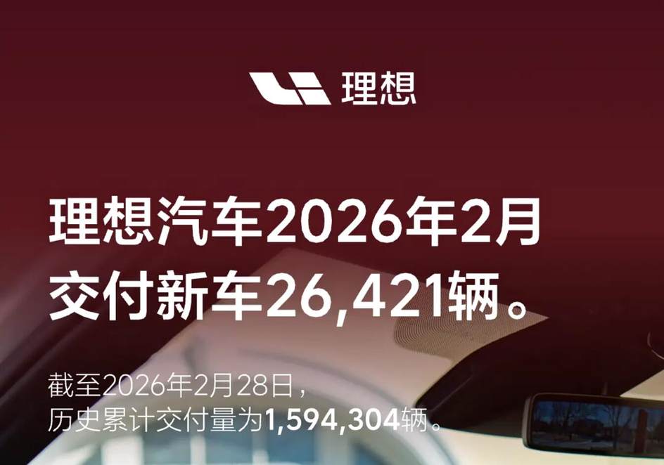 理想汽車公布2026年2月交付數據,交付新車26421輛。這份成績單不是很“理想”,現在,一批又一批中大型增程SUV登場,也紛紛配備“冰箱、彩電、大沙發”,而且,性能、技術都很給力,理想汽車優勢開始變得不那么明顯。