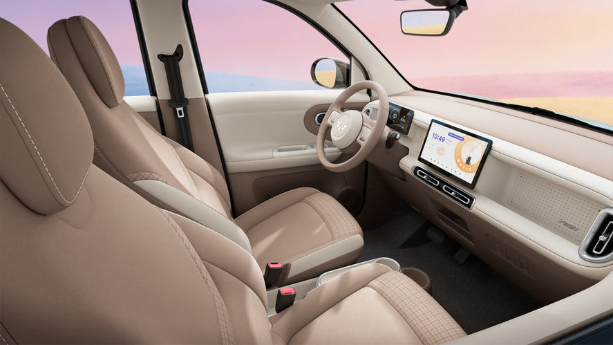 第五代宏光MINIEV內飾設計簡約中藏巧思,圓潤中見秩序,在細節(jié)處展現(xiàn)出精致復古和簡約時尚的趣味融合。新車升級為同級領先的懷擋設計,搭配多功能方向盤及10.1英寸中控屏,大幅提升駕駛安全性與便利性。“環(huán)扣交融”門飾板、“靈動島”式一體化副儀表臺等設計均采用環(huán)形元素設計巧思,環(huán)環(huán)相扣,搭配“星鉆流光”鍍鉻飾條,將藝術觀感和實用儲物完美結合;全新升級的棕白格趣座椅質感舒適性全面提升,前排座椅靠背向后放倒最大可達164°,隨時都可休息小憩。
