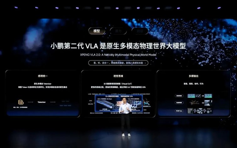 在模型層面,小鵬第二代VLA是原生多模態物理世界大模型,集“看、聽、讀”為一體。不僅是自動駕駛模型,還可以應用在Robotaxi、飛行汽車和人形機器人上。