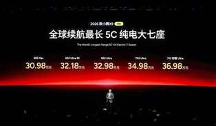 與此同時,2026款小鵬X9純電版重磅上市,產(chǎn)品力全面對齊超級增程版,以“兩種動力,同一個旗艦標(biāo)準(zhǔn)”的硬核實力重新定義高端家用大七座新標(biāo)桿。純電版新車共推出5款版型,包括665 Max、650 Ultra SE、650 Ultra、750 Ultra以及710 四驅(qū) Ultra,官方指導(dǎo)售價分別為30.98萬元、32.18萬元、32.98萬元、34.98萬元及36.98萬元。此次煥新,還帶來了2026款小鵬X9增程版1602 Ultra SE,官方指導(dǎo)售價為32.18萬元。