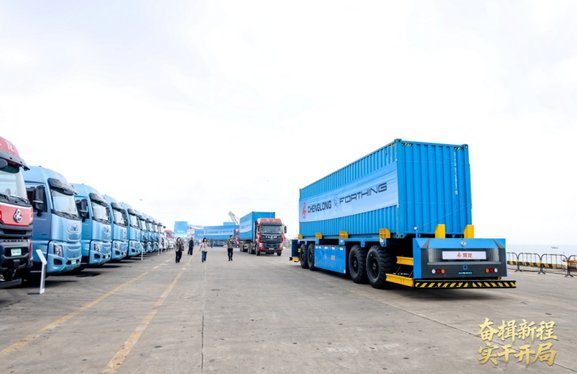 在系列簽約與新品發(fā)布后,活動迎來了備受關注的智能作業(yè)展示環(huán)節(jié)。在開工指令發(fā)布之后,智能卡車隨即啟動裝載集裝箱,與自動化港口裝備協(xié)同完成吊裝上船作業(yè),車與船鳴笛呼應,直觀展現(xiàn)了“汽車智造+港口物流”融合的新質(zhì)生產(chǎn)力?;顒赢斕煜挛?,船舶搭載著一批T5 EVO KD散件集裝箱緩緩從欽州港離泊駛向柬埔寨。同時,在3月5日也將有47輛東風柳汽乘用車(星海S7、星海V9、M4),從北部灣港出發(fā),直達阿聯(lián)酋杰貝阿里港。