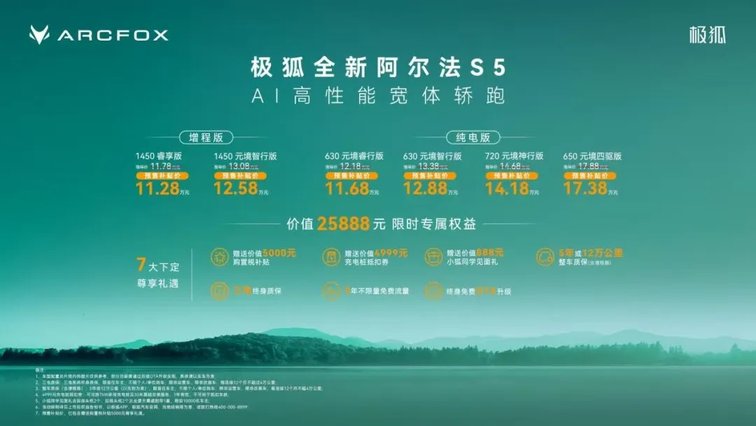 3月1日,極狐汽車宣布全新阿爾法S5正式開啟預售。新車定位“AI高性能寬體轎跑”,推出純電與增程兩種動力形式共6款版型,預售補貼后價格區間為11.28萬元至17.38萬元,以“入門即高配”的姿態,率先打響了2026年轎車市場的價值升級之戰。