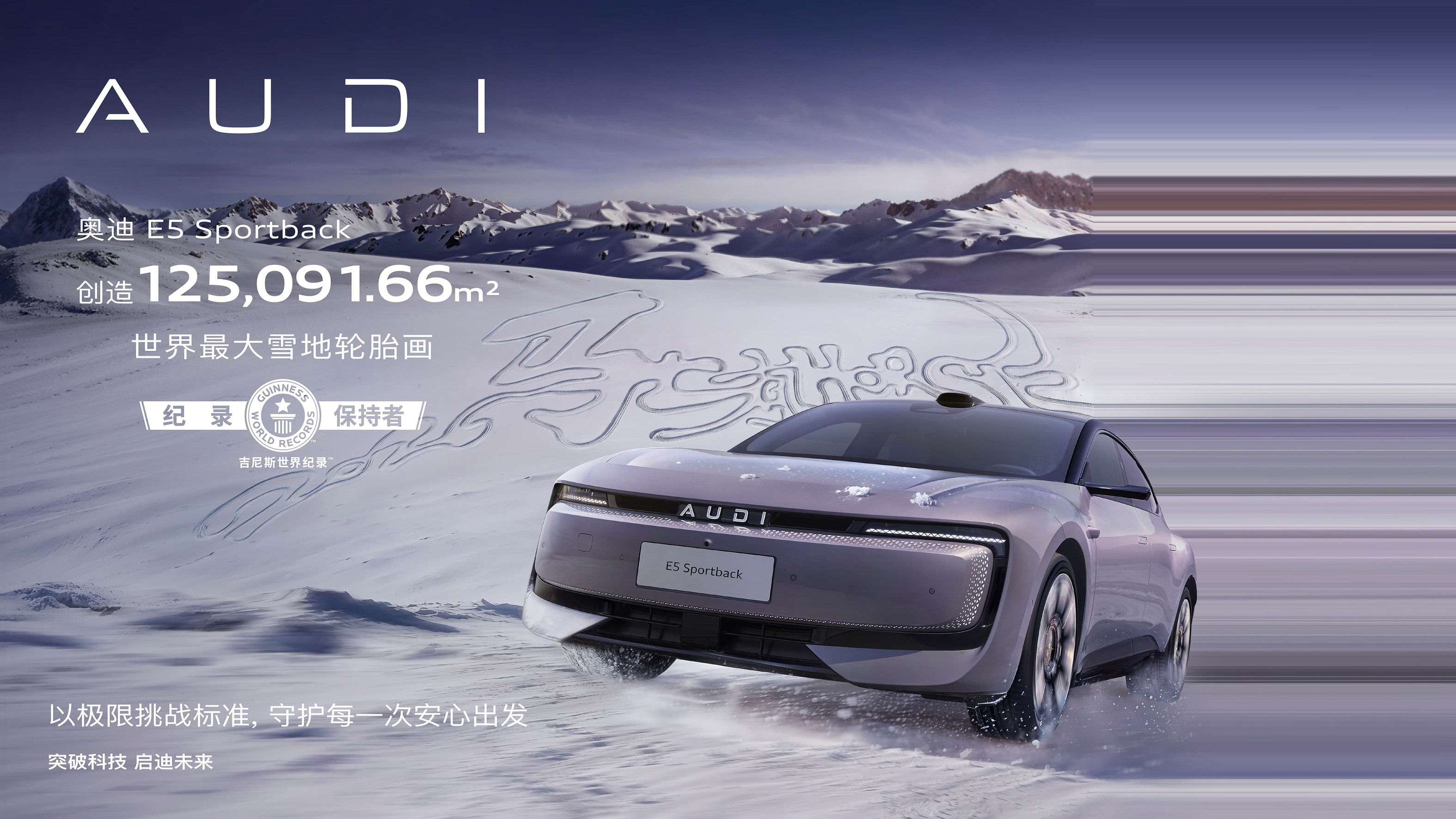 雪地加冕吉尼斯!奧迪 E5 Sportback創(chuàng)下世界最大雪地輪胎畫記錄
