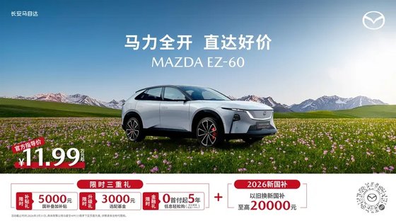 自上市以來,EZ-60憑借“更安全、更可靠、更智能、更適配、更富駕趣”的產品力,斬獲央視“第一發布”認證、全球四大頂級設計大獎等榮譽。通過持續的智能化迭代,長安馬自達致力于讓車輛與用戶需求同頻進化,不斷刷新合資新能源SUV的智能體驗上限。目前,EZ-60運動版現已上新到店,同步帶來三重新春限時購車禮遇(活動截至2026年3月31日):