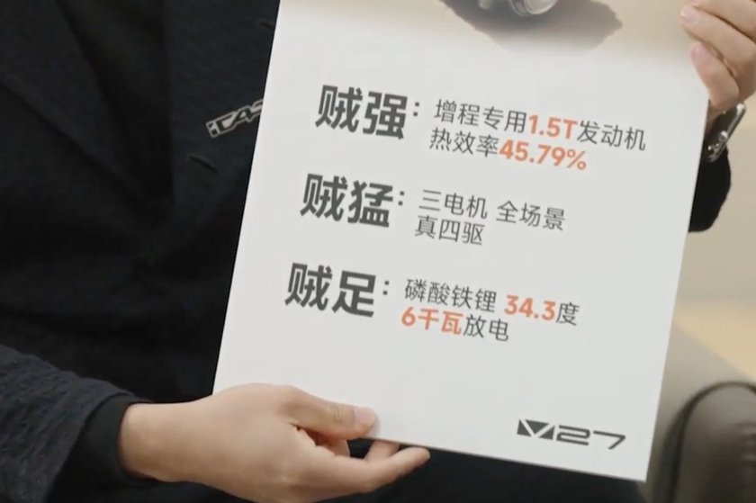 搭載34.3度磷酸鐵鋰電池,純電續航200km,綜合續航1200km,每升油發電3.71度電,同時支持6kW放電。