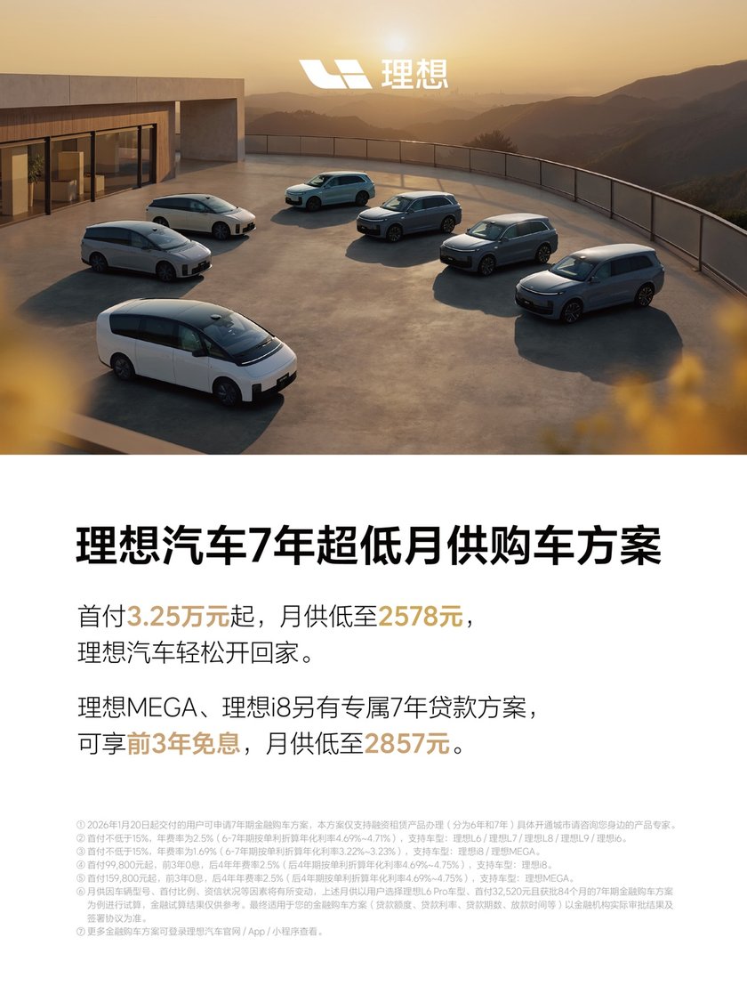 在理想汽車的7年超低月供購車方案中,不同車型的金融政策有所區(qū)別。以理想L6 Pro為例,消費(fèi)者需先支付15%的首付,月供預(yù)估為2971元,總利息約為37166元。而理想MEGA和理想i8則可享受“限時(shí)7免3”方案,即貸款7年,前3年0息,后4年正常計(jì)息。需要支付利息。