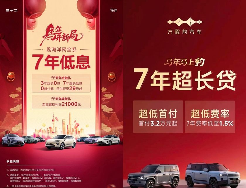 自2月底起,比亞迪也開始跟進(jìn)該金融政策,旗下的海洋網(wǎng)全系車型推出3年0息、7年超低息、0首付等多種選擇;王朝網(wǎng)中的漢、唐、元、宋等車型也陸續(xù)加入。此外,方程豹豹5長續(xù)航版、鈦7全系車型同樣可享受7年超長貸。