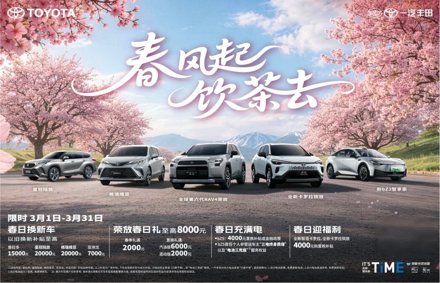 春風(fēng)起,飲茶去,一汽豐田全明星產(chǎn)品春日限時(shí)福利享不停