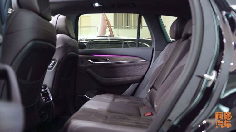 在舒適性配置上,副駕駛座位提供帶調節功能的女王座椅,后排靠背調節按鈕設置在門板處。后排空間在軸距超過2.8米的基礎上,提供了較為充裕的乘坐體驗。